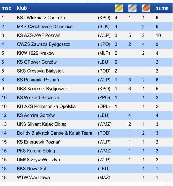Zakończone w niedzielę Młodzieżowe Mistrzostwa Polski były dla naszego klubu wydarzeniem wyjątkowym i przełomowym. Po raz pierwszy w ponad 75-letniej historii KST Włókniarz Chełmża zwyciężył w klasyfikacji medalowej tej rangi zawodów, potwierdzając swoją pozycję jako jeden z czołowych ośrodków szkolenia kajakarek w Polsce.
